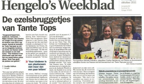 11 okt 2011 > Tante Tops in Hengelo’s Weekblad door studiodas 11 okt 2011 door studiodas Dieneke Scholten (Studiodas) op de foto met Liesbet Spinhoven van Oosten (Uitgeverij DaVinci) en Gertie van Nuenen (illustratrice) om Tante Tops, de nieuwe topografiemethode van Uitgeverij DaVinci, in het zonnetje te zetten.